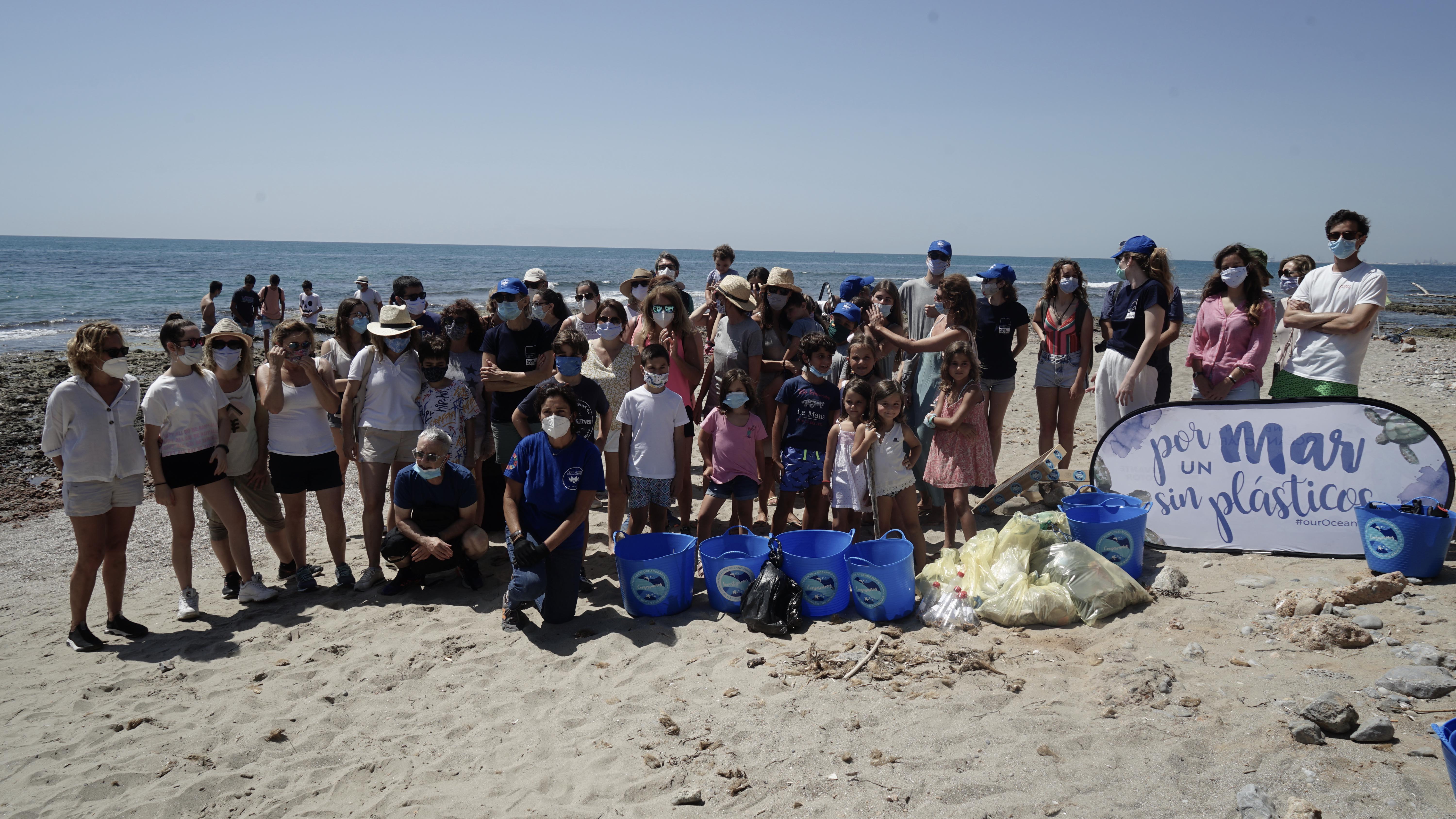 Mas de cincuenta voluntarios participan en la limpieza de la playa de Bellver.