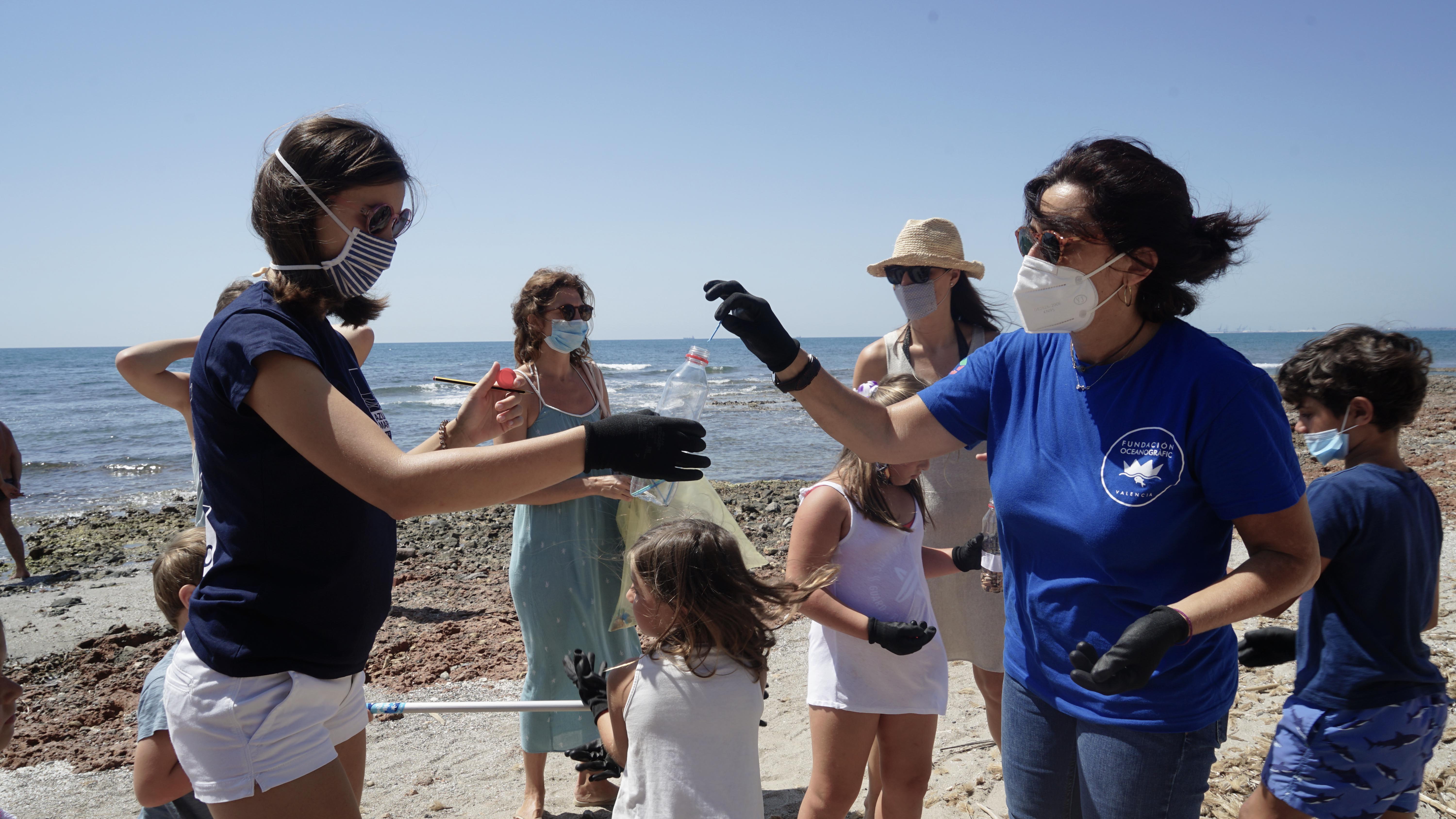 Antes de la suelta de “Colomera” más de cincuenta voluntarios, organizados por personal de la Fundación Azul Marino y Fundación Oceanogràfic, procedieron a limpiar la franja de la playa. Se ha procedido de una forma sistemática con pautas de recogida y selección previamente establecidas para este tipo de actividad con el fin de clasificar los residuos encontrados.
