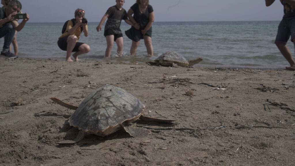- Escolares del colegio de educación especial Raquel Payà, del Centre Ocupacional de La Xara y residentes de la Residència Santa Llúcia han despedido al mar a los tres animales