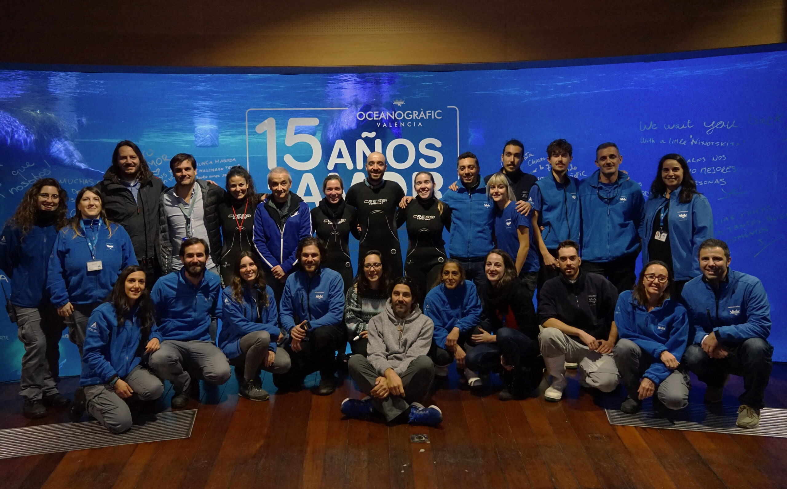 Esos profesionales, veterinarios, biólogos, cuidadores, y los responsables de las distintas áreas del Oceanogràfic ofrecieron una fiesta de despedida a Tanya, Ninotchka y Petruska que llegar a ser muy emotiva a los pies del hábitat donde han estado todos años.