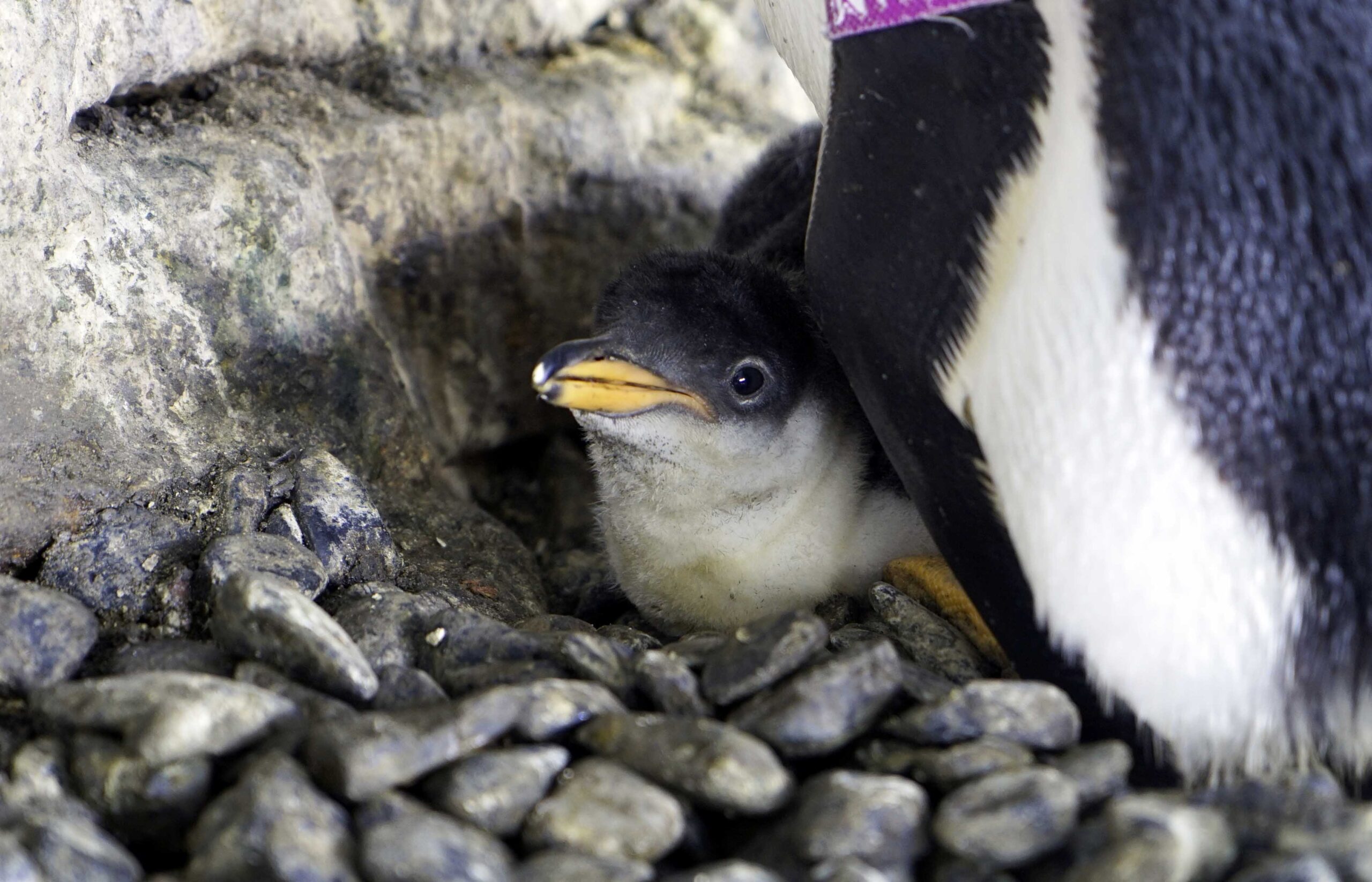 Al observar esto situación, los cuidadores decidieron traslocar un huevo fértil de otra pareja. Electra y Viola llevaron adelante con éxito todo el proceso de reproducción y ahora cuentan con su primera cría.