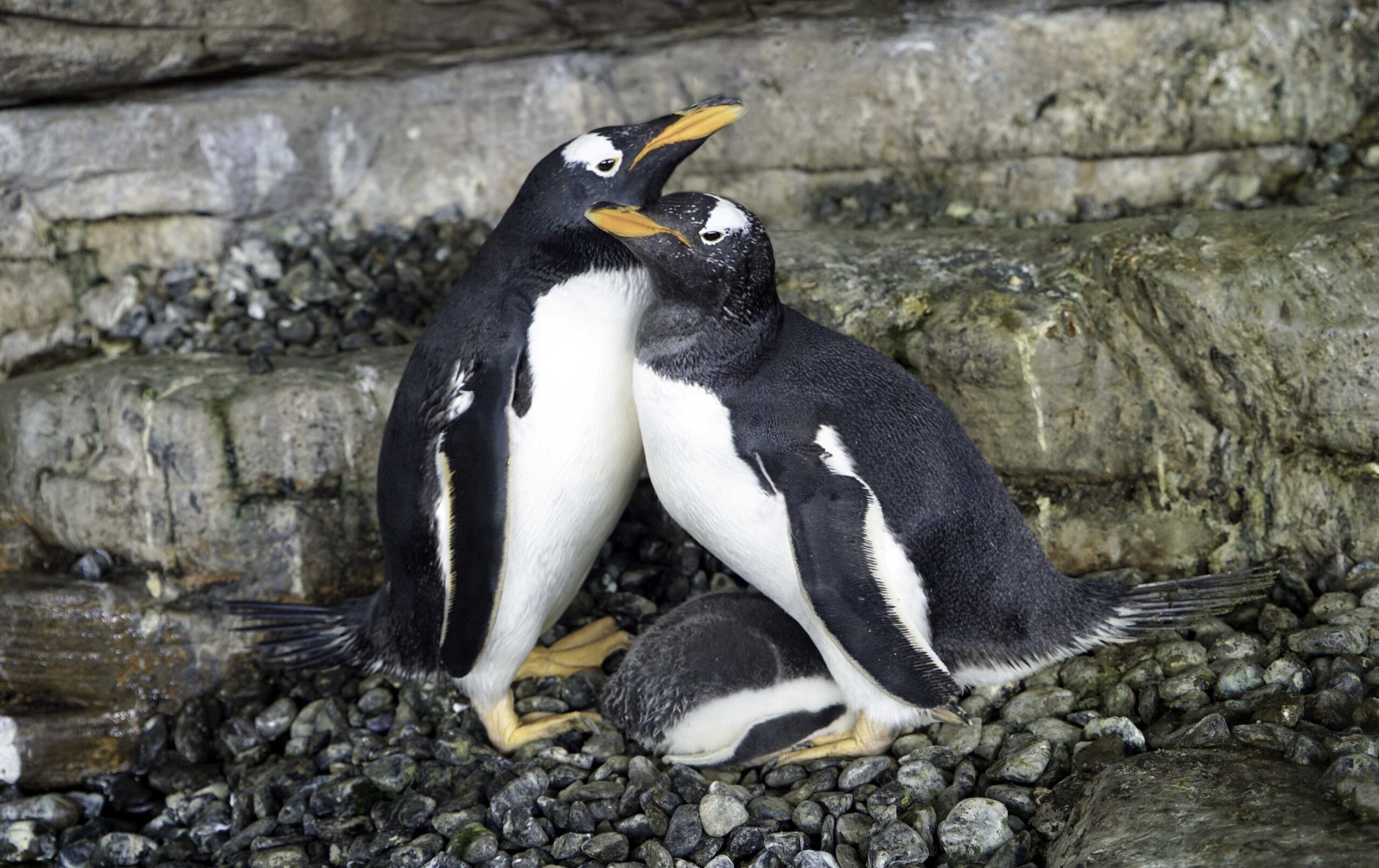Electra y Viola son hembras y han sido capaces de adoptar, incubar y criar un huevo de otra pareja, algo que sucede por primera vez en el Oceanogràfic.