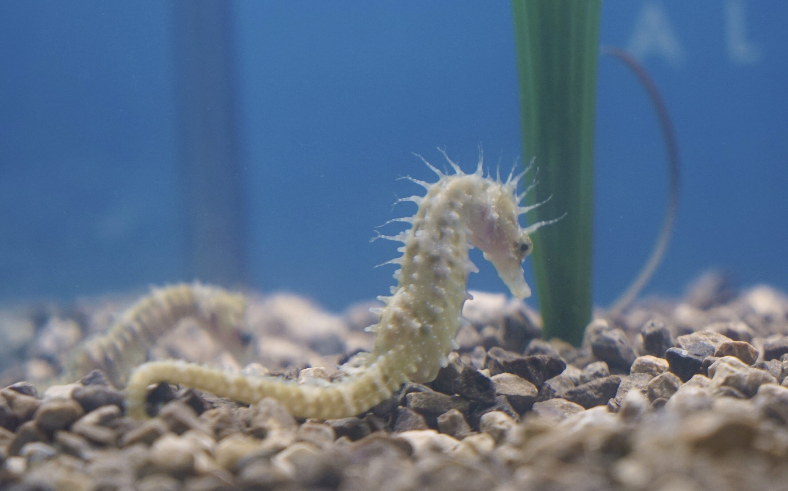 La nueva instalación consta de un tanque con dos cúpulas de acrílico de visión subacuática que permite sumergirse en los 6.000 litros de agua a 18º, en los que se puede observar los característicos caballitos de mar (Hippocampus guttulatus) agarrados con sus colas prensiles a la planta acuática Cymodocea nodosa, el pez aguja (Singnathus abaster), los gobios ( Pomatochistus marmoratus ) , el chirrete (Atherina boyeri), con un papel fundamental en la actividad pesquera de la zona y el fartet (Aphanius Iberus), además de una representación de nacras (Pinna nobilis) dado que no se puede contar con ejemplares vivos por su extrema fragilidad.