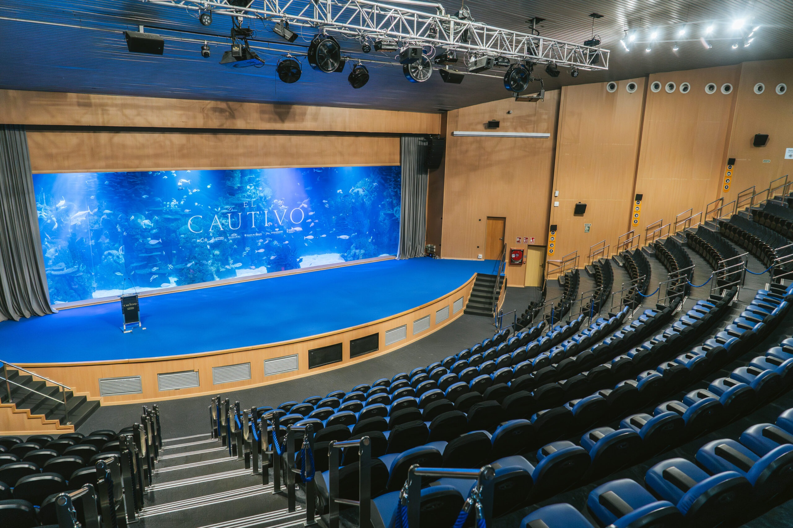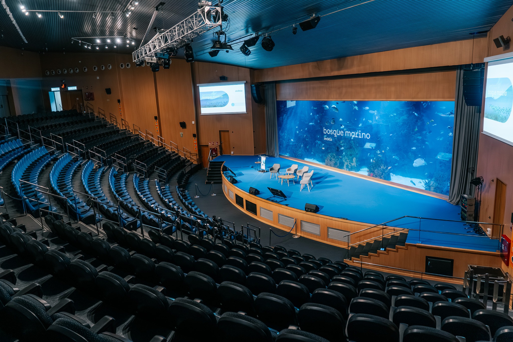 Sala en forma de anfiteatro con un escenario presidido por un acuario de grandes dimensiones, que representa el mundo marino del mar Rojo. El auditorio está dotado de todas las necesidades audiovisuales para la celebración de eventos.