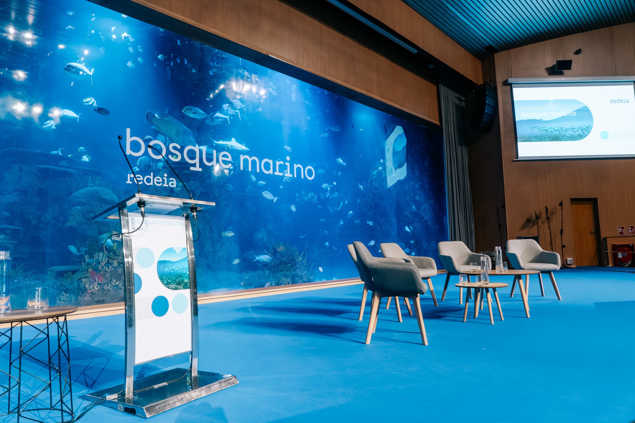 Se trata de una sala envuelta por dos grandes acuarios panorámicos de 24 metros de longitud cada uno, que representan el ecosistema de los arrecifes del Indopacífico y el Caribe. Un espacio diferente que aportará un nuevo estilo a sus eventos.