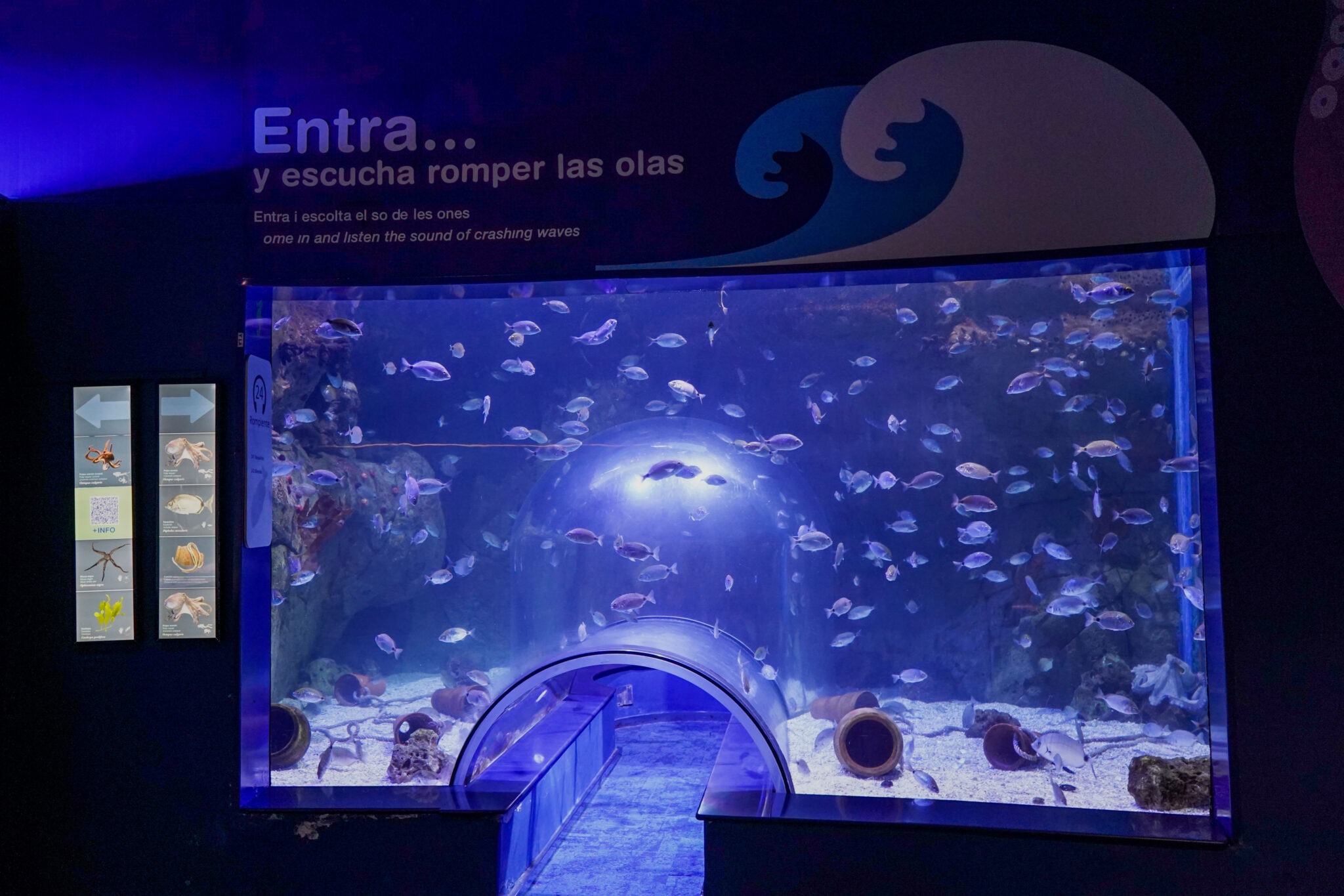 El acuario consta de una campana acrílica accesible a través de un túnel, que permite experimentar el romper de una ola sobre nuestras cabezas.