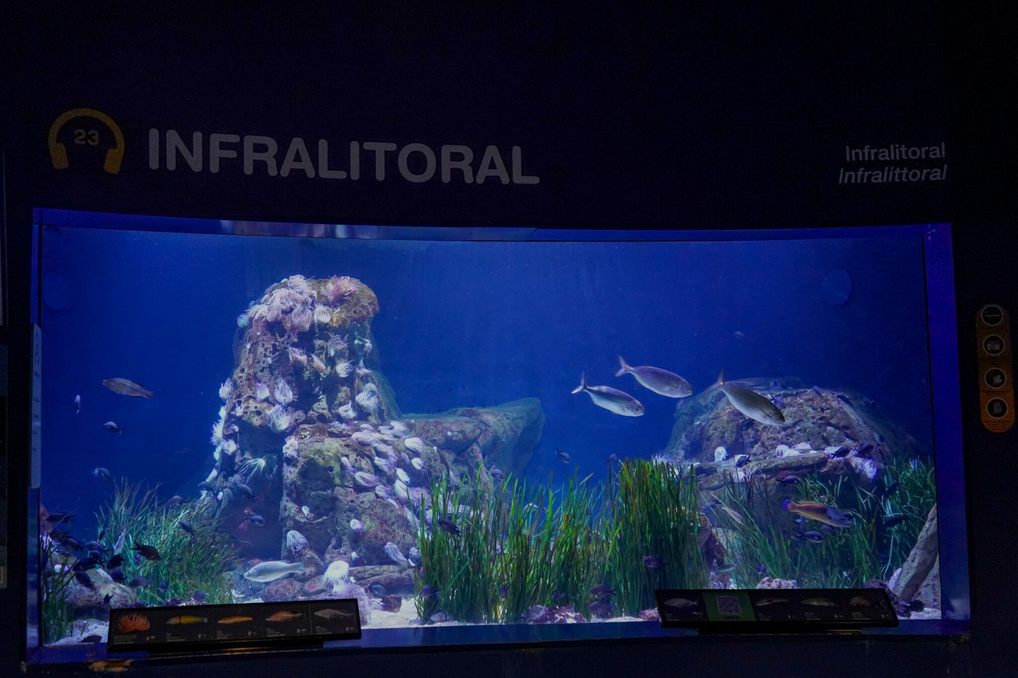 Este acuario representa el ambiente de las costas rocosas constantemente batidas por el oleaje.