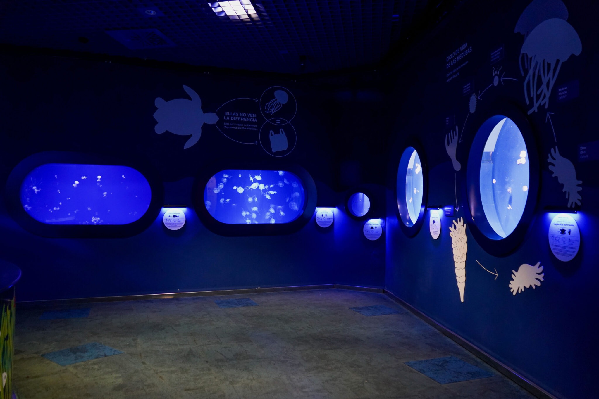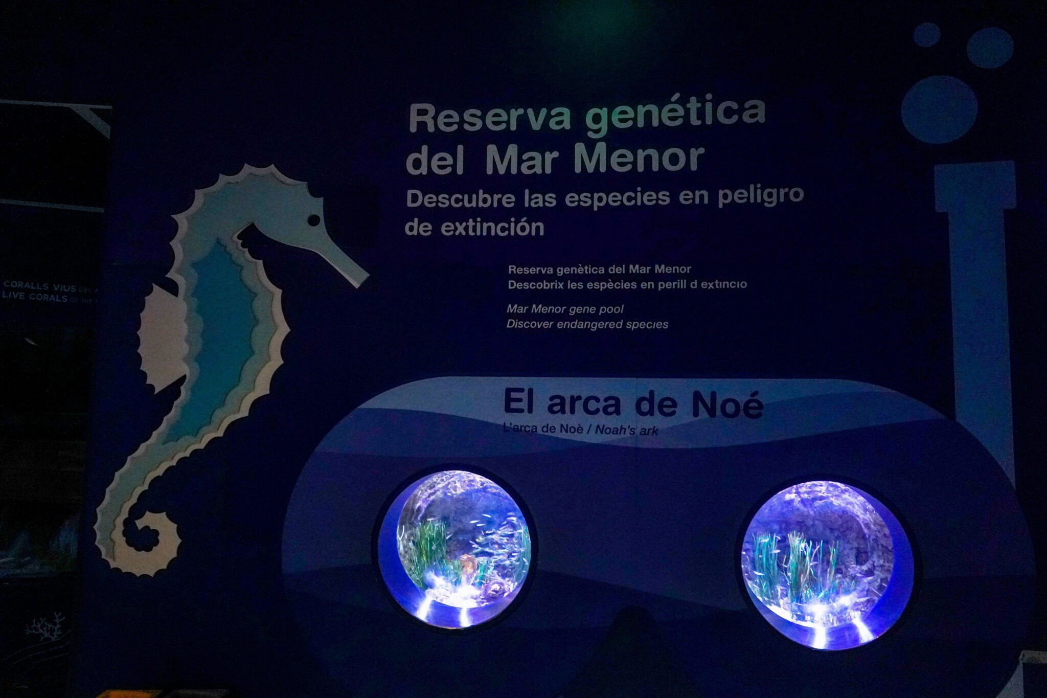 En estos pequeños acuarios que asemejan unas gafas de buceo, el visitante puede conocer de cerca las distintas especies que habitan el Mar Menor y que se encuentran amenazadas por las duras condiciones medioambientales en las que habitan.