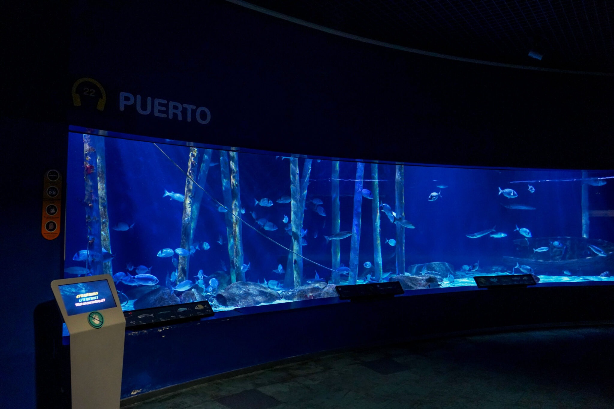 Este acuario representa la biodiversidad existente en las zonas portuarias. Los animales que habitan estas zonas han sido capaces, por su resistencia y versatilidad, de adaptarse a este medio. Las aguas interiores y abrigadas son: más calientes, menos salinas, y menos transparentes.