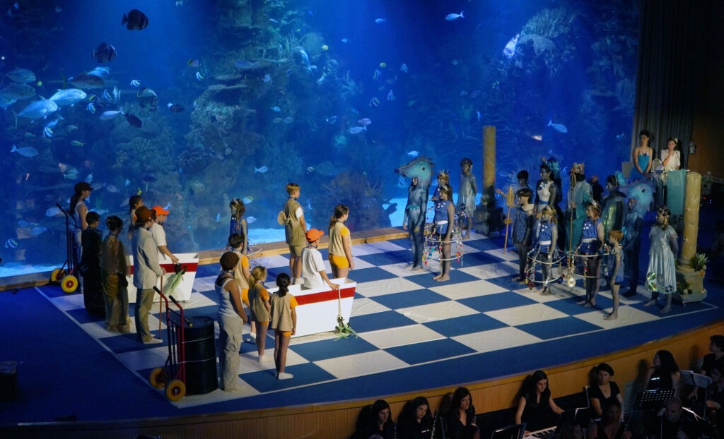 El lugar no pudo ser más idóneo para una escenificación que recrea la opresión y destrucción que el ser humano ejerce en los mares y océanos. El anfiteatro tiene como telón de fondo un impresionante acuario y la acción transcurre en las profundidades del entorno marino de l’Illa del Portitxol de Xàbia donde, continuamente, se están produciendo hallazgos arqueológicos y biológicos.