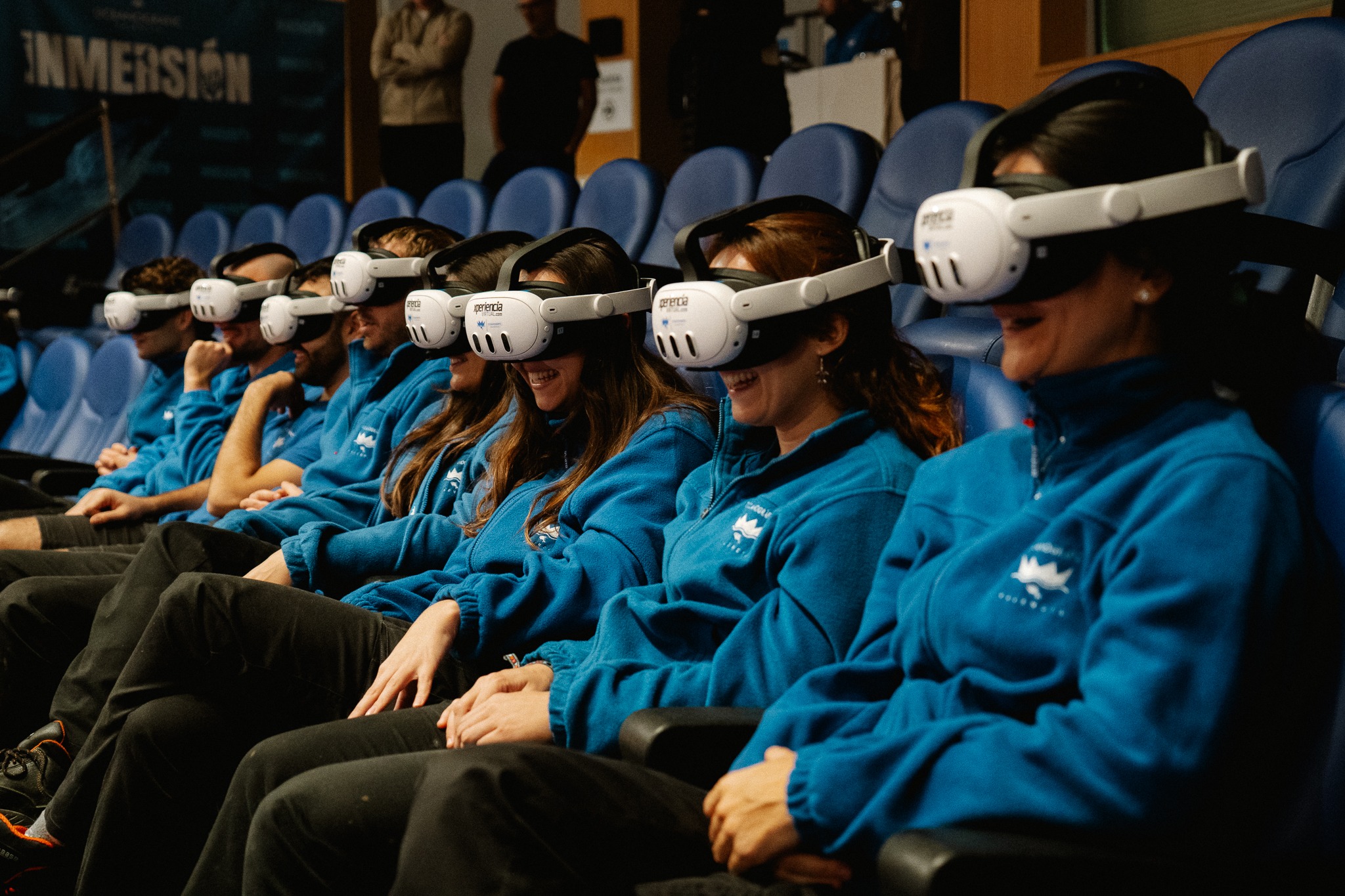 El uso de las gafas de realidad mixta, Meta Quest 3, permite percibir cómo el auditorio se transforma de manera gradual. A partir de este punto, el relato inicia con una rotura simbólica del acuario central, que eleva el nivel del agua y genera la sensación de estar completamente sumergidos en el océano, gracias al desarrollo de la empresa Spatial Voyagers, especializada en contenidos y aplicaciones de computación espacial.