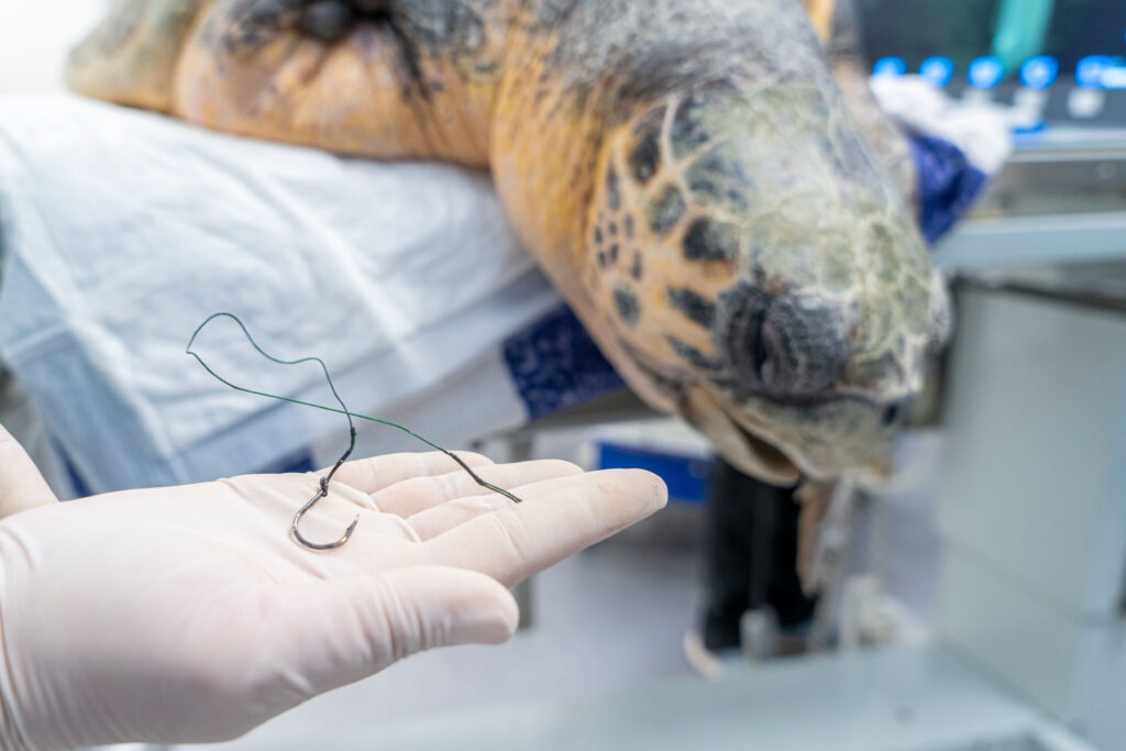 A su llegada, los veterinarios también detectaron la presencia de un anzuelo en su esófago. Tras una primera evaluación, extrajeron el anzuelo y comenzaron un seguimiento clínico para valorar su evolución.