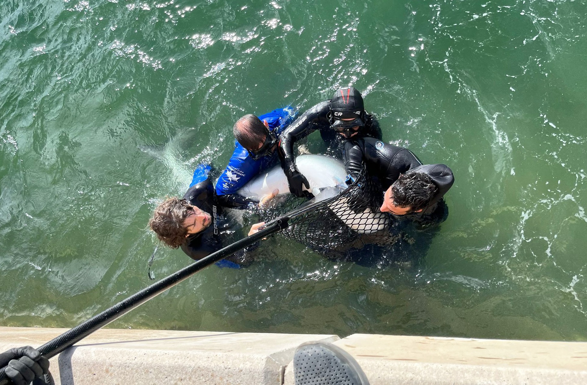 De esta forma, el equipo de veterinarios ha podido hacerle un examen físico y un análisis de sangre y no ha detectado alteraciones en el estado de salud del animal, pero presentaba una condición corporal más delgada de lo habitual. Por todo ello, y en base a las pruebas, se ha decidido trasladarlo al exterior de la dársena con ayuda de dos embarcaciones.