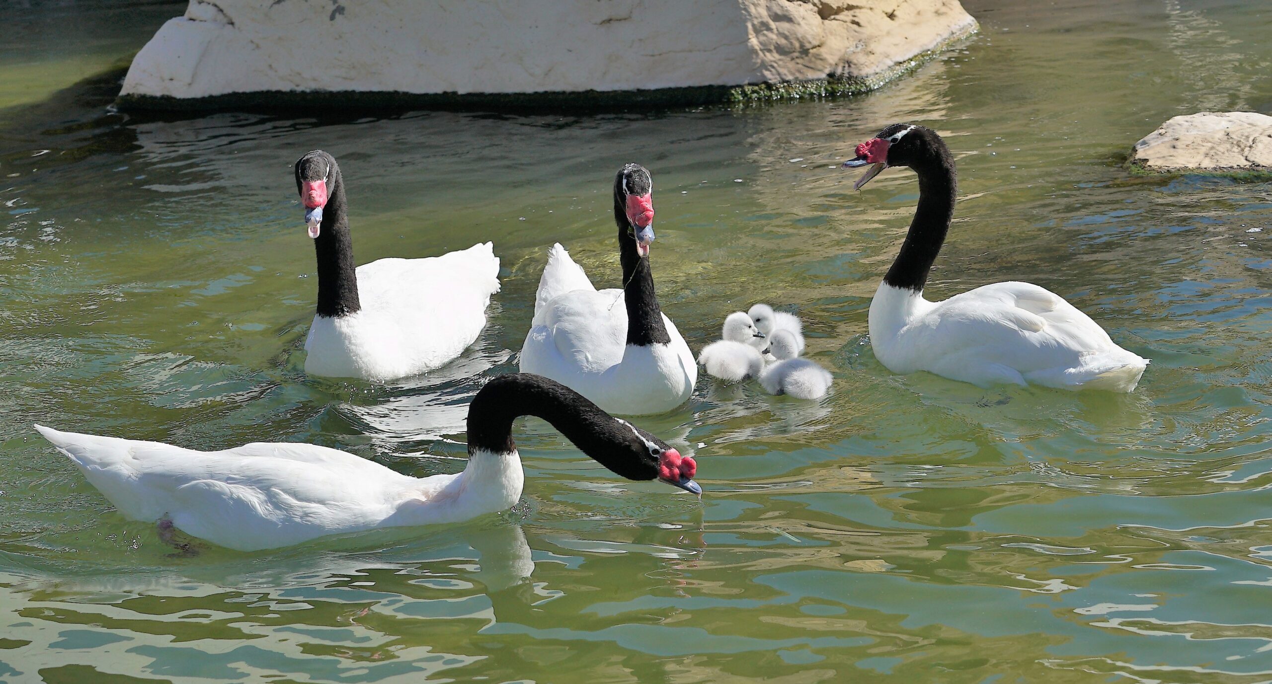 La naturaleza siempre reserva sorpresas. Y una de ellas ha sido la que se han llevado los cuidadores del departamento de Aves del Oceanogràfic València al descubrir que en la hornada de este año se ha formado una familia muy particular de cisnes de cuello negro: tres polluelos recién nacidos tienen tres “padres” que cuidan de ellos y les alimentan.
