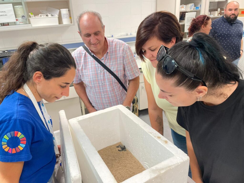 Coincidiendo con ello, la concejal de Medio Ambiente de Guardamar del Segura, Mari Carmen Durán, y los técnicos, José Pérez y Ainhoa Palomar han venido hoy a verlas y a conocer de primera mano los programas de investigación y conservación que llevamos a cabo en el acuario.