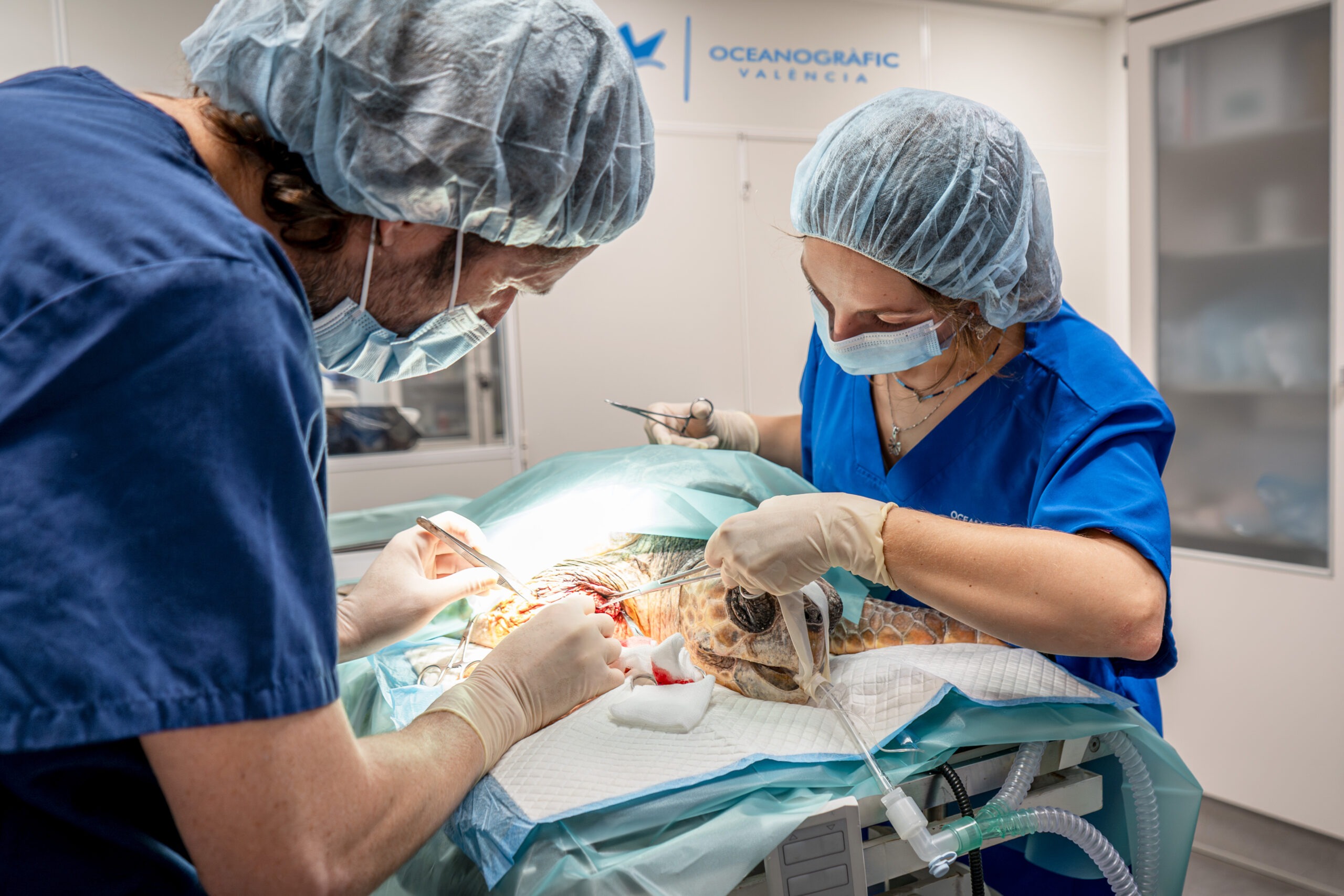 Los veterinarios de la Fundación Oceanogràfic le extrajeron los restos de plástico ingeridos mediante endoscopia y le practicaron una cirugía de urgencia